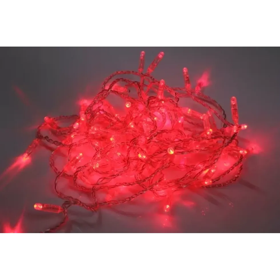 Светодиодная гирлянда статичного свечения LED-PLS-100-10M-24V-R/C-W/O, красный/прозрачн. провод, соединяемая (без силового шнура) С КОЛПАЧКОМ